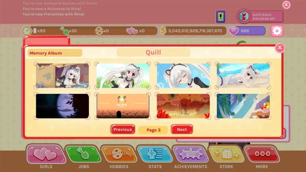 - Prioritize Gifts Wisely: Early on, only buy gifts for the girl you’re currently focusing on. Hoard your cash for job and hobby unlocks first.